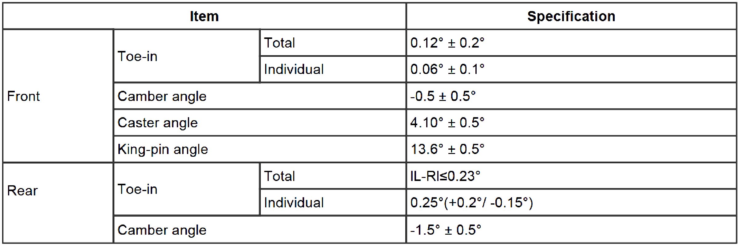 Wheel Alignment Specifications
