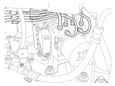 3. Disconnect the brake tubes from the HECU by unlocking the nuts counterclockwise with a spanner.