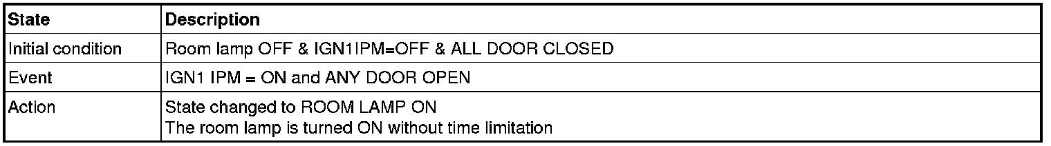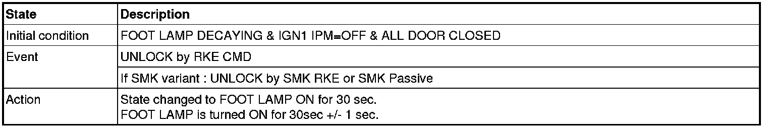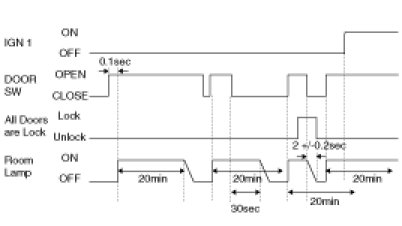Any door opens at terminal OFF state without FOB in. After transition to all door closed within 500msec, if the valid Fob is in side car and all door locked then IPM transmits SMK key reminder warning 2 command (SMK Warning