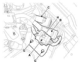5. Remove the ECM & TCM bracket installation bolts (G) and nut (H).