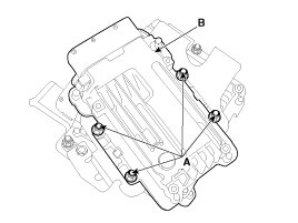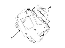 6. After removing the installation nuts (A), remove the TCM (B) from the bracket