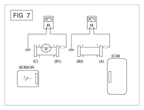 - Disconnect connector (B), and measure the resistance between connector (A) and chassis ground, and between (B1) and chassis ground as shown in [Fig 7].
