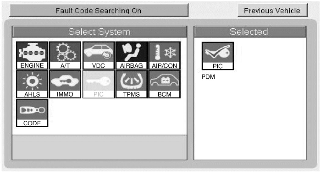 2. Select model and "Smart key system(Button start)" menu if you want to check PDM.