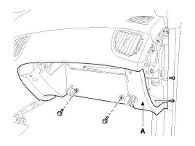 3. Remove the glove box housing(A) after loosening the mounting screws.