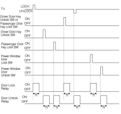 (2) When Driver Door Key Unlock and Passenger Door Key Unlock turn ON, turn Door Unlock Relay and Driver Door Unlock Relay output ON during T1.