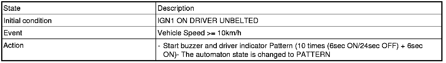 (1) When Driver Door SW is ON at the status of KEY IN ON, Buzzer will be outputted per 0.6sec continuously.