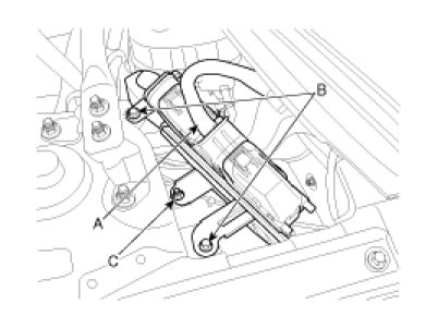 4. Remove the ECM bracket installation bolts (B) and nut (C).