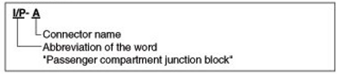 A Connector identification symbol consists of a wiring harness location classification symbol corresponding to a wiring harness location and number corresponding to the connector.