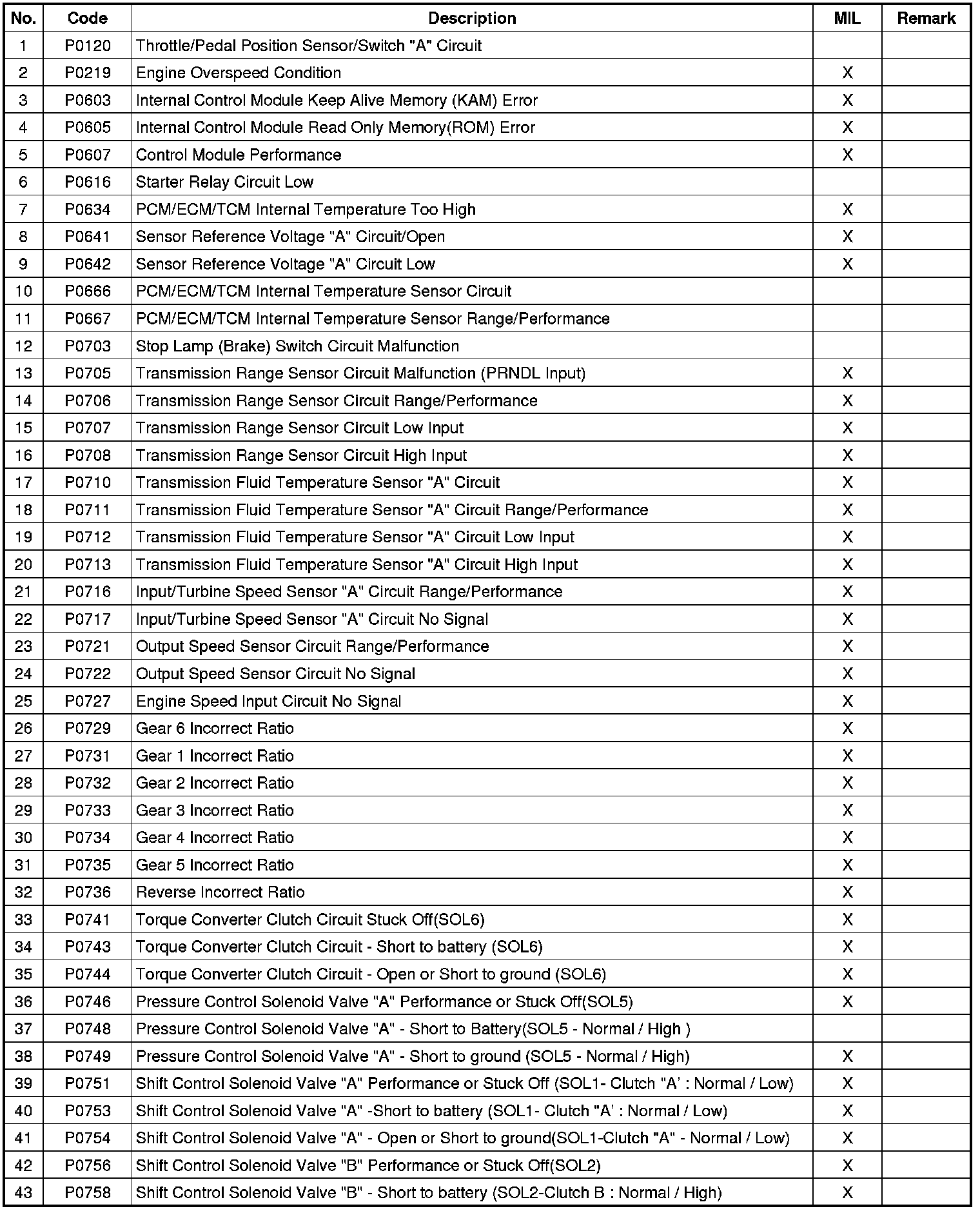 Inspection Chart For Diagnostic Trouble Codes(DTC)