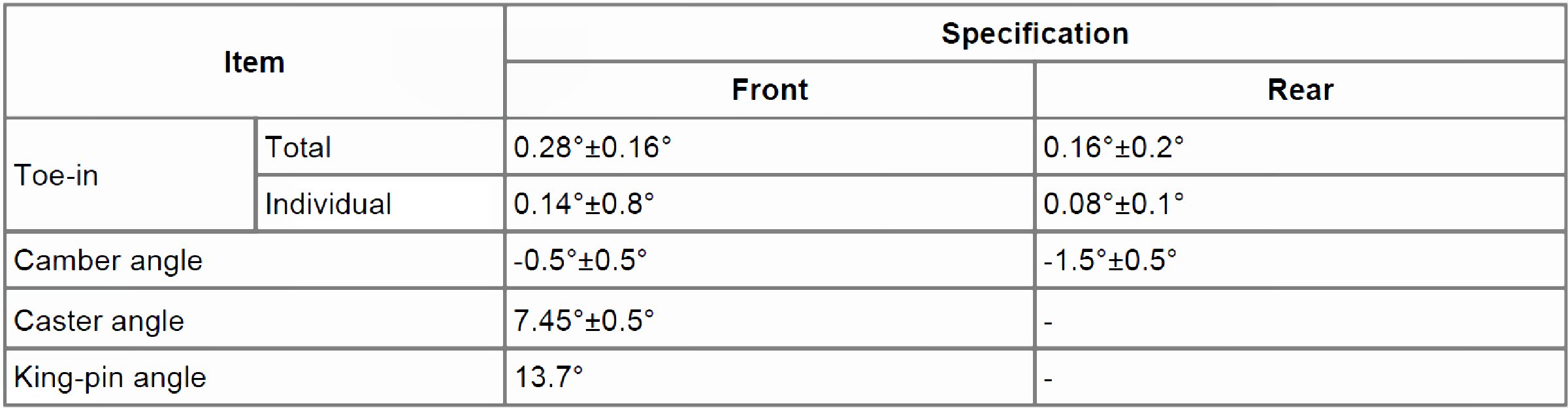 Wheel Alignment Specifications