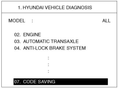 3. After selecting "CODE SAVING" menu, push "ENTER" key, then the screen will be shown as below.