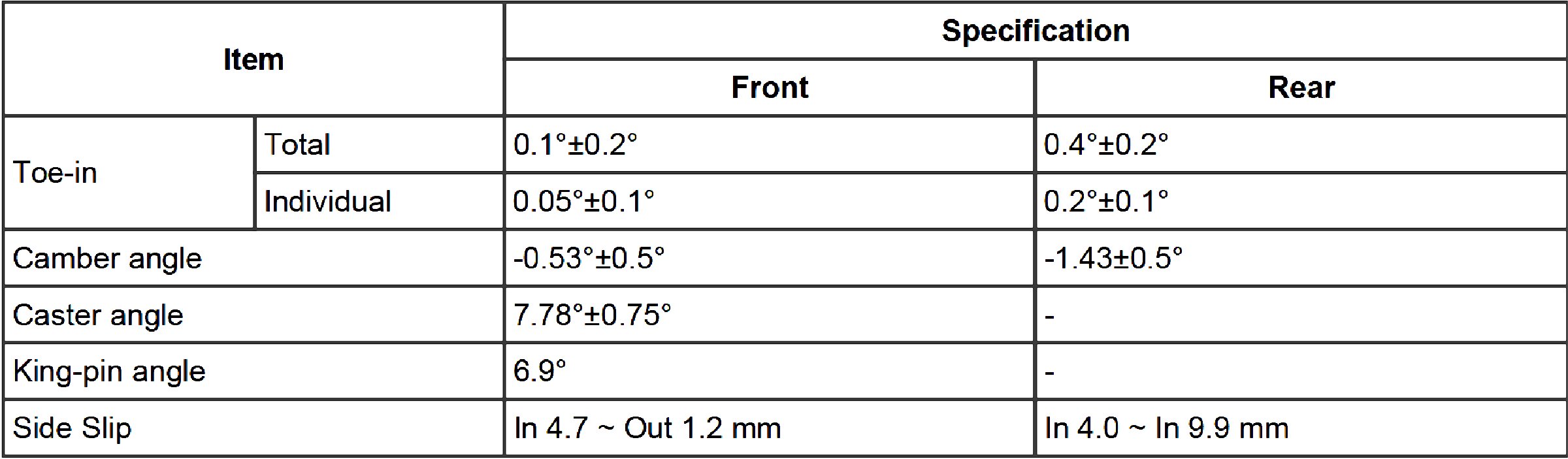 Wheel Alignment Specifications