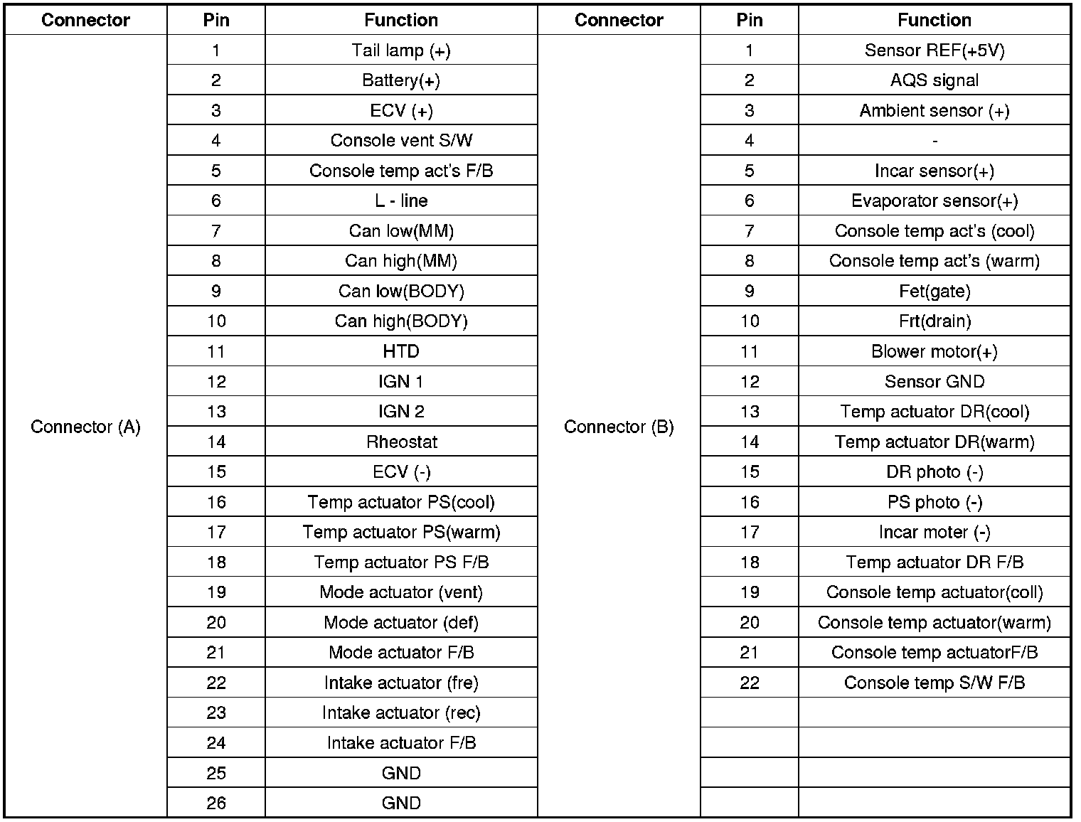 Connector pin function