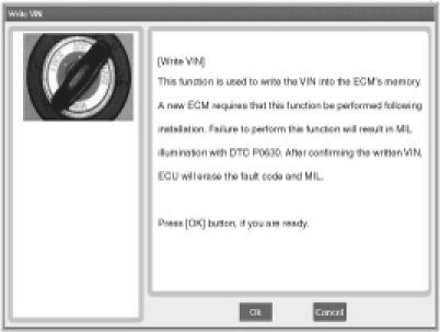 The programmed VIN cannot be changed. When writing the VIN, confirm the VIN carefully.