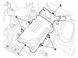4. Remove the mounting bolts (B), and then remove the IDB (C).
