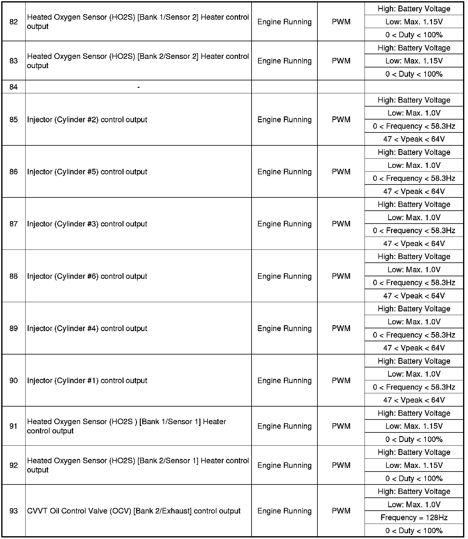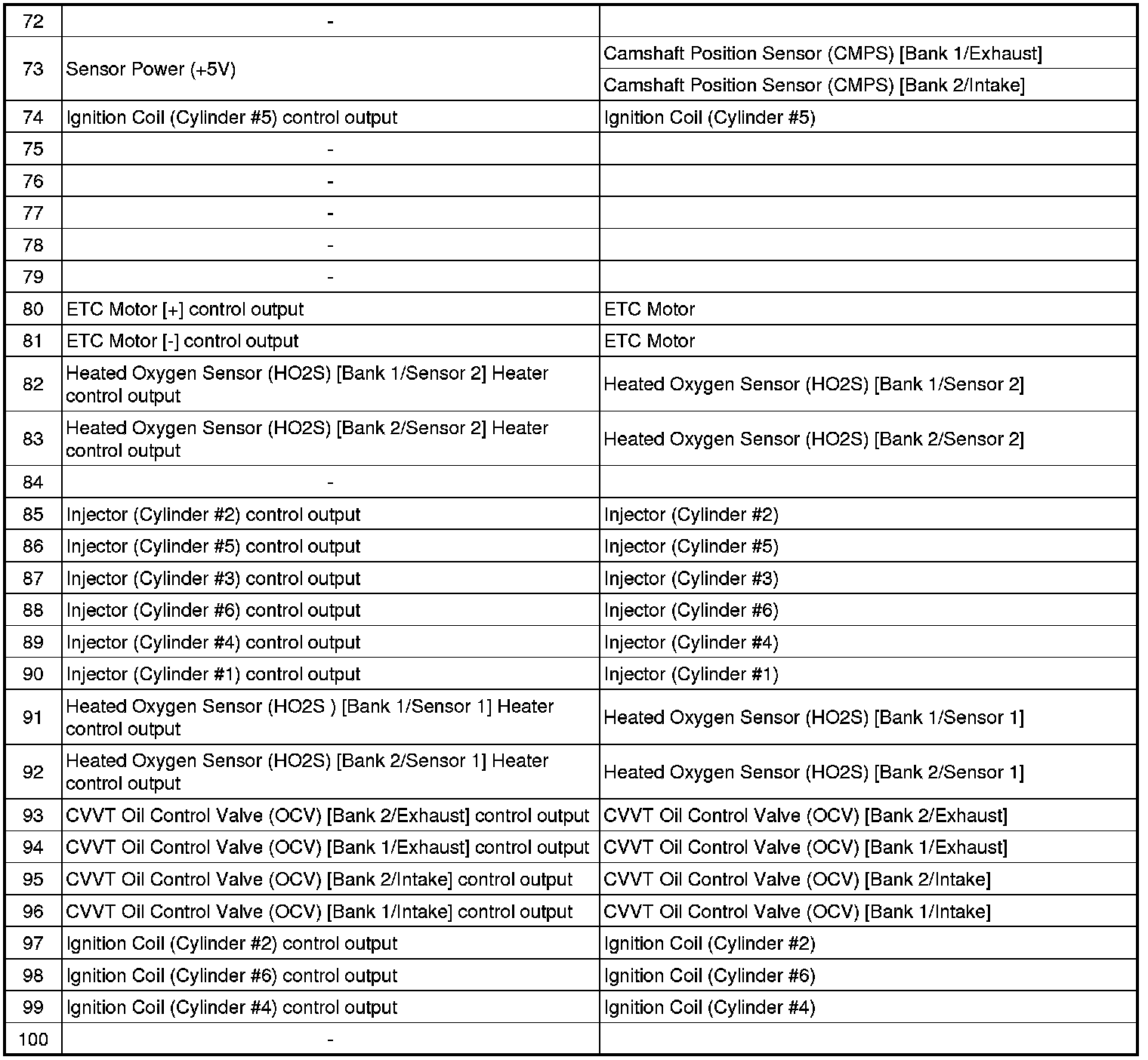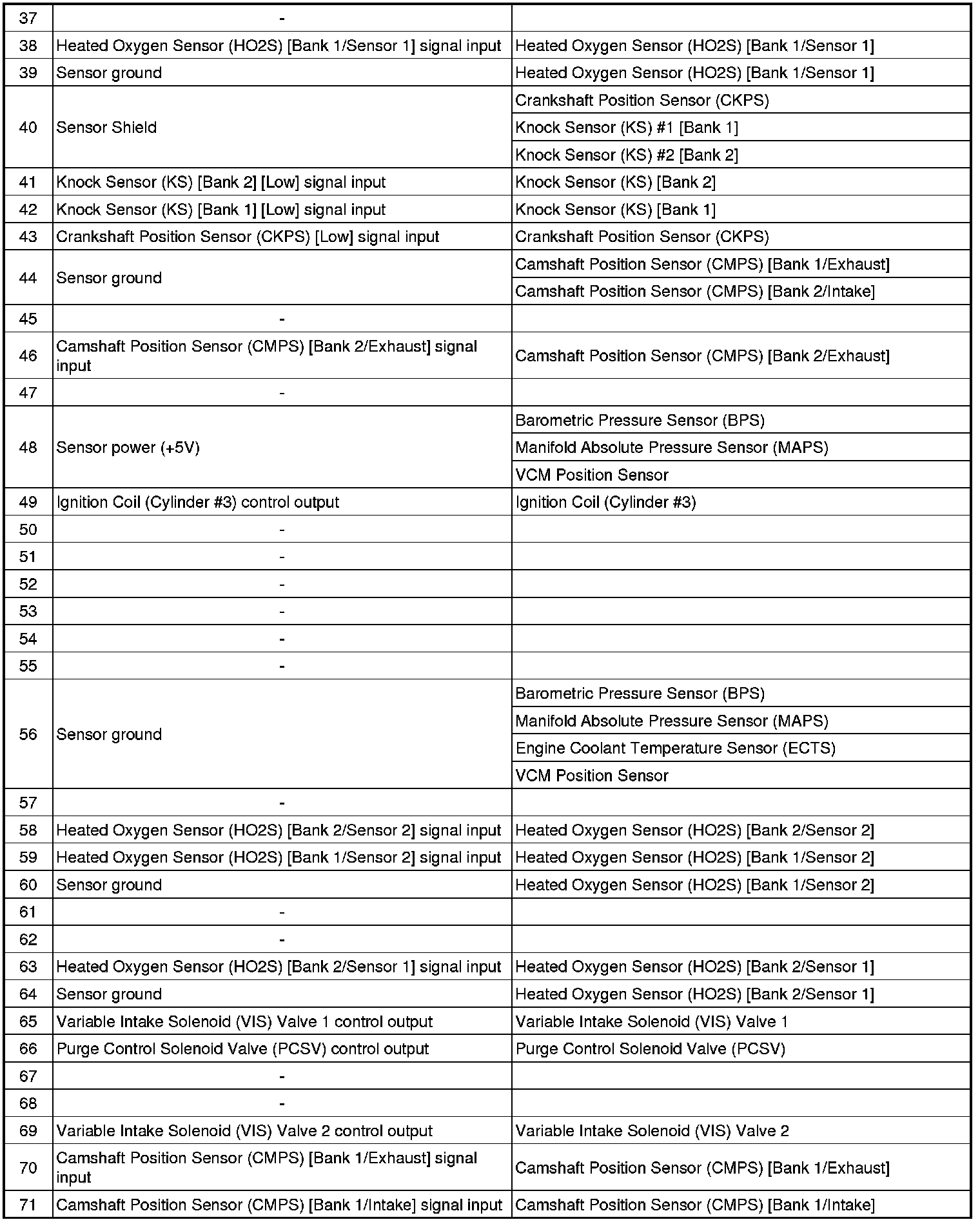 ECM Terminal Input/Output Signal