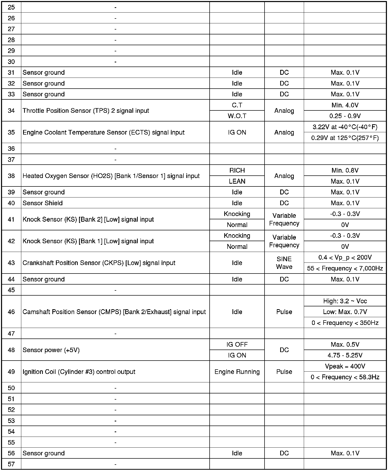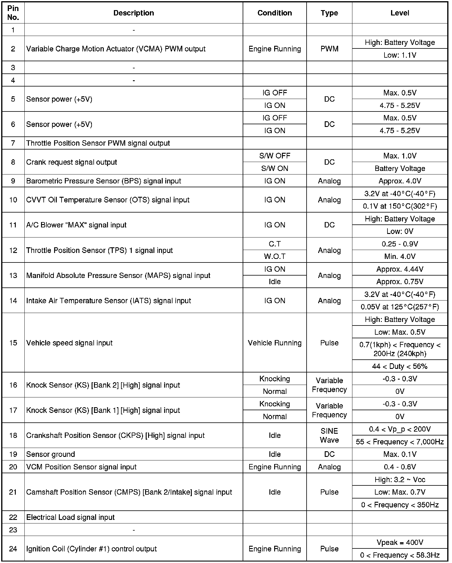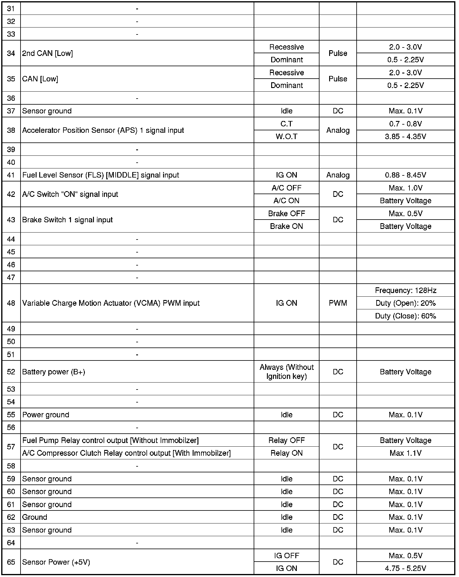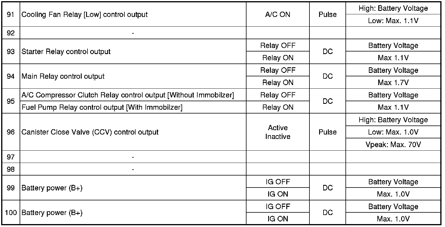ECM Terminal And Input/Output signal