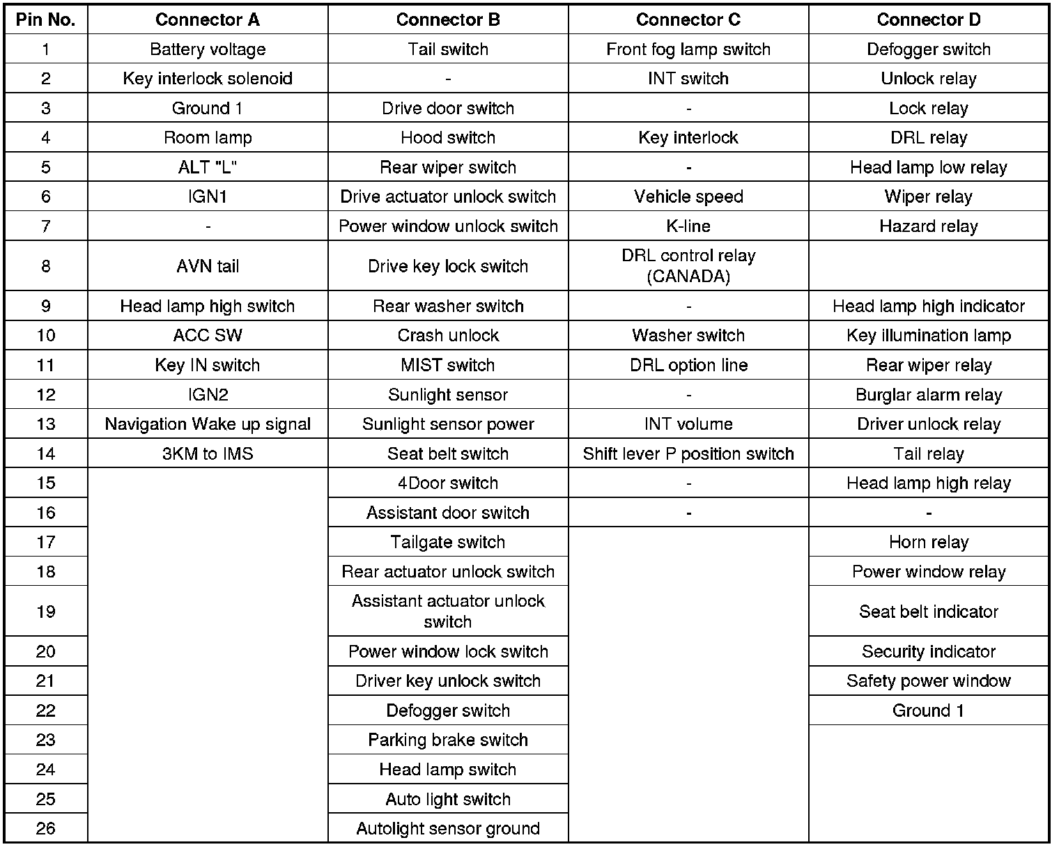 The BCM offers 3 items user option mode for a user convenience (AUTO DOOR LOCK, ARM/DISARM BY KEY, HORN ANSWER BACK)