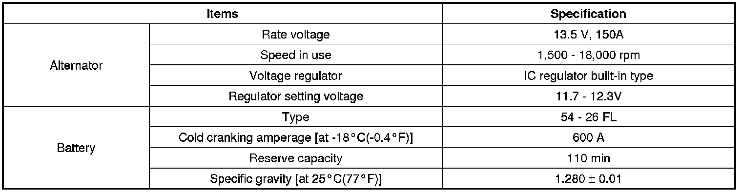 Home >> Hyundai >> 2012 >> Santa Fe AWD V6-3.5L >> Repair and Diagnosis >> Specifications >> Electrical Specifications >> Charging System