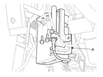 3. Remove the body control module (A) and antenna cable after loosening 3 bolts and disconnecting connector.