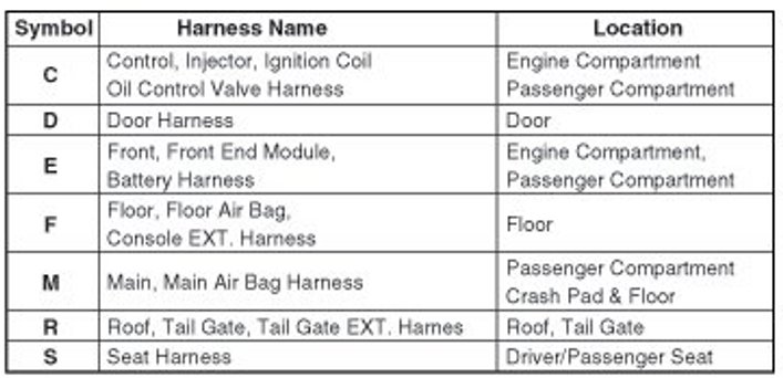 - Depending on vehicles, It is necessary to check the harness name symbol on the harness layouts for detailed symbol.