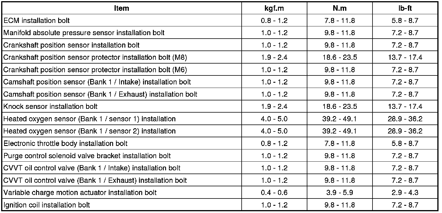 Home >> Hyundai >> 2012 >> Santa Fe FWD L4-2.4L >> Repair and Diagnosis >> Powertrain Management >> Specifications