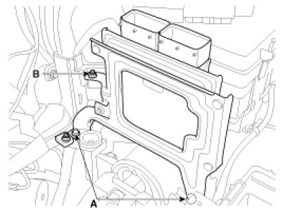 5. Remove the installation nuts (A) and screw (B), and then remove the ECM (C) from the bracket.