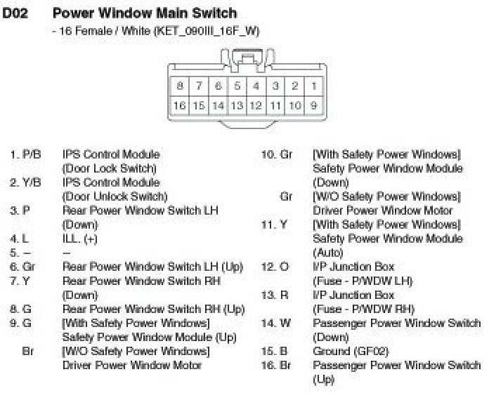 D02 Power Window Main Switch: