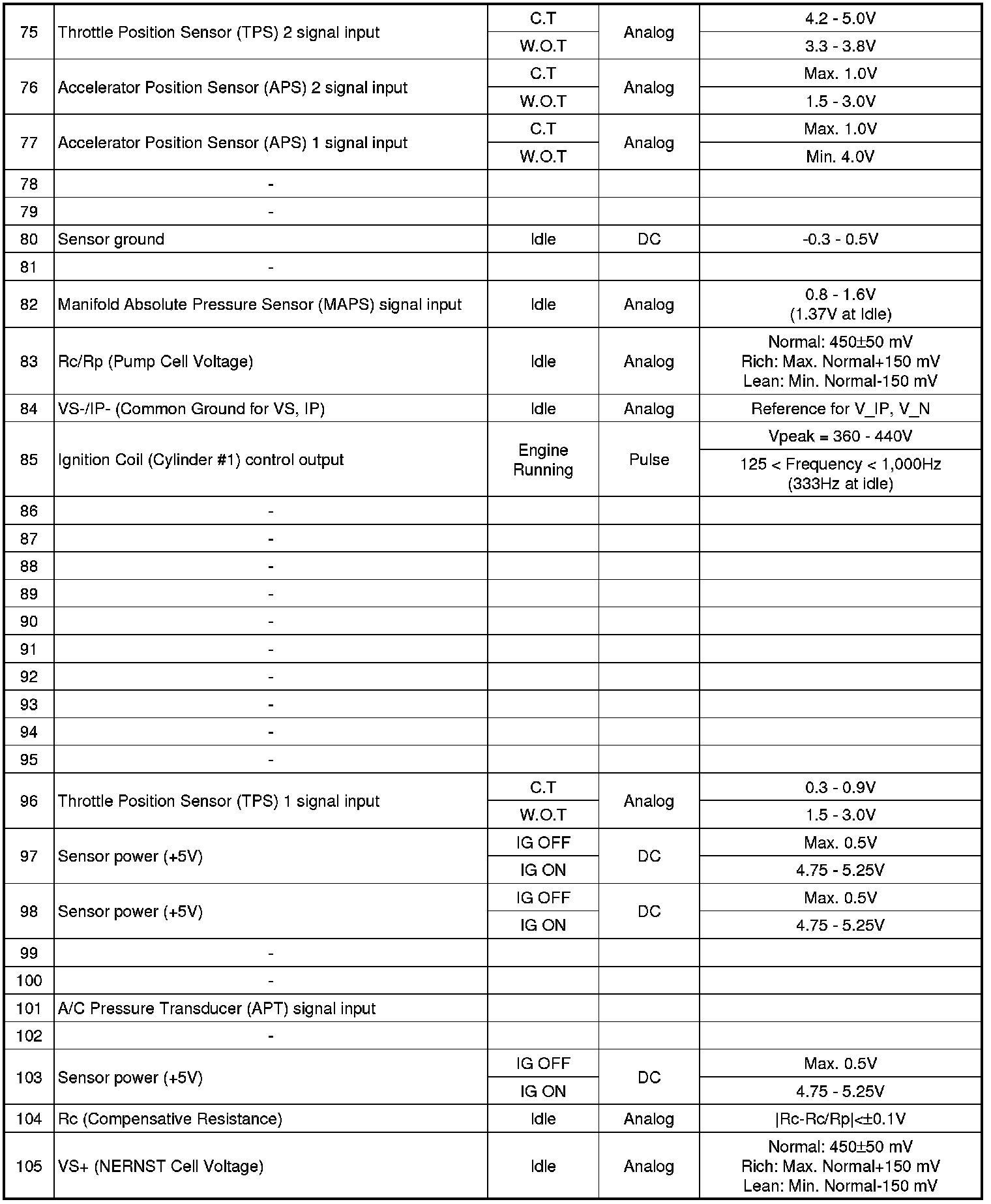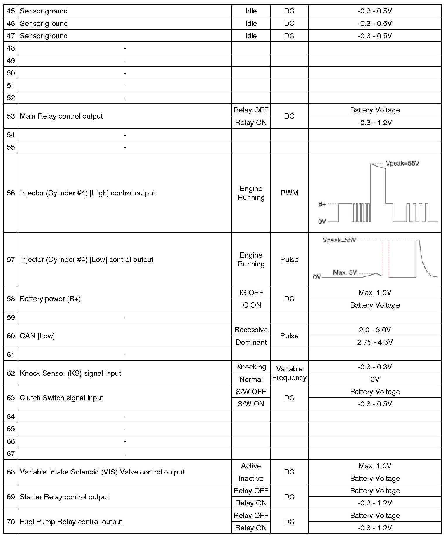 ECM Terminal And Input/Output signal