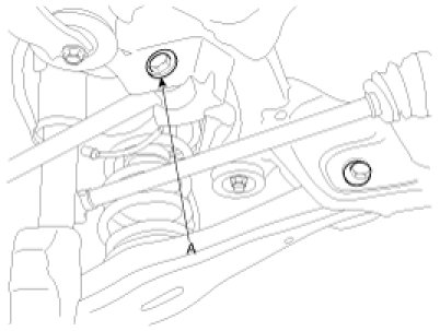 1. Loosen the nut holding the rear lower arm cam bolt (B).
