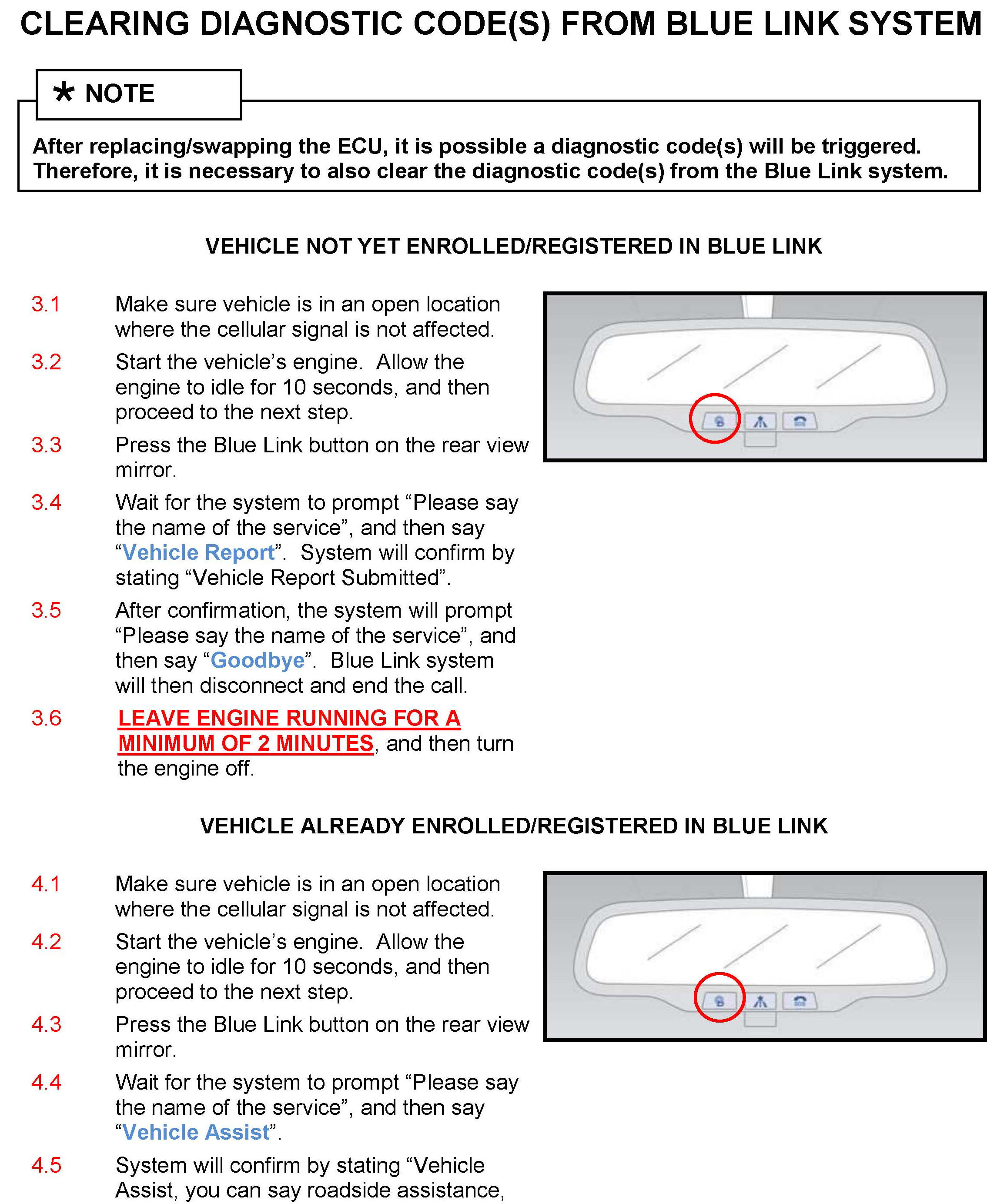 ^ How to clear Diagnostic code(s) from the Blue Link system.