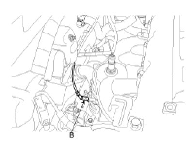 2. Disconnect the connector (A), and then remove the sensor (B).
