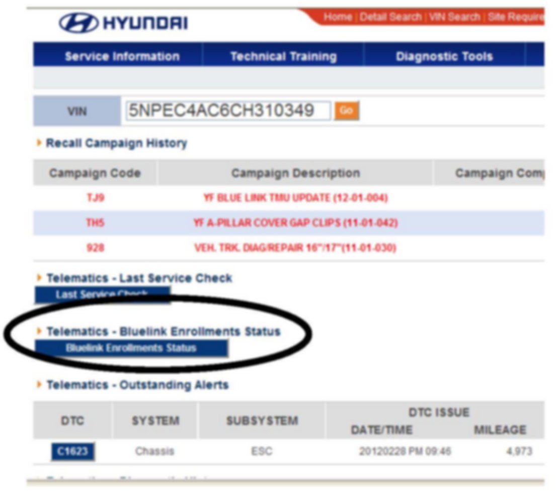 5.11 Confirm all the DTC(s) have been cleared from the GDS, and then proceed with clearing the DTC(s) from the Blue Link system. See the last section of this TSB for instructions on how to clear DTC(s) through Blue Link.