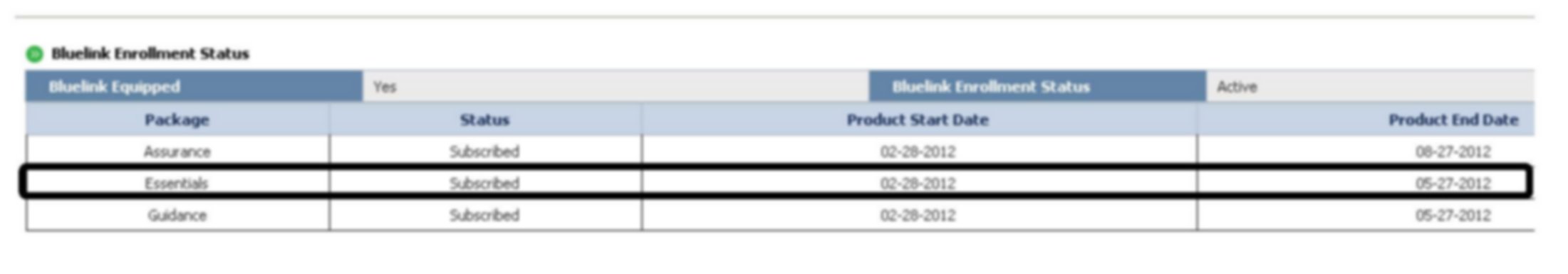1.5 A screen will pop up with the customers Blue Link account status, and the type of packages. Assure the customer has the Essential package.