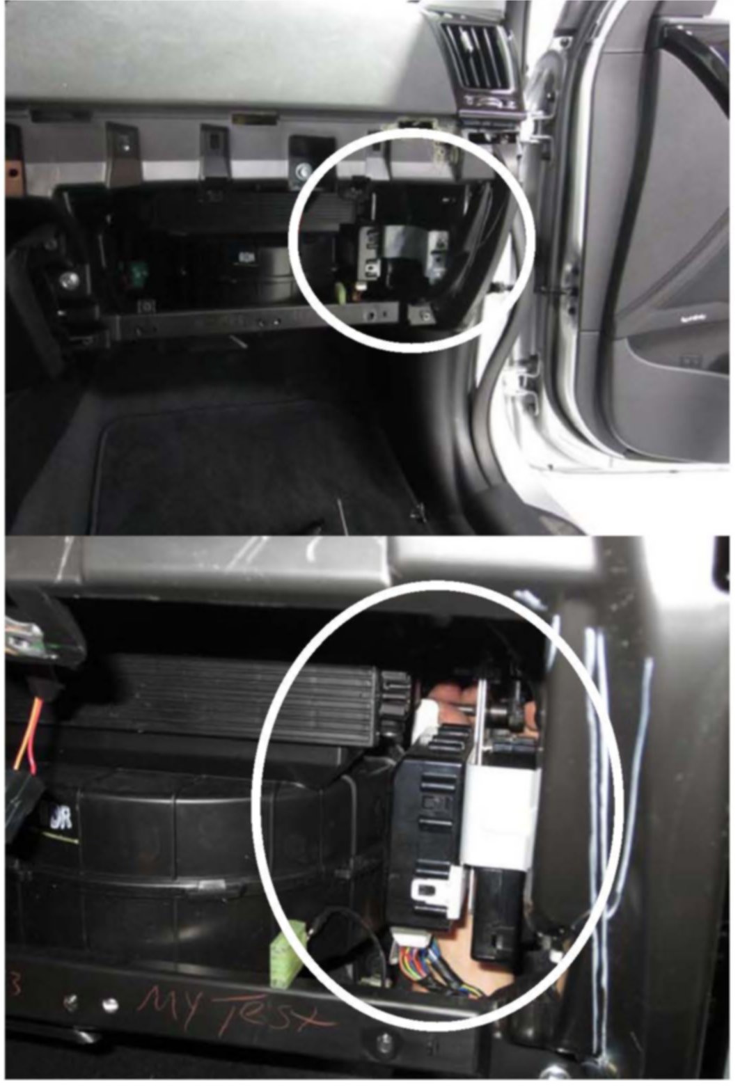 Both the PDM and Smart Key Modules are located behind the passenger glove box, and to the right of the blower fan.