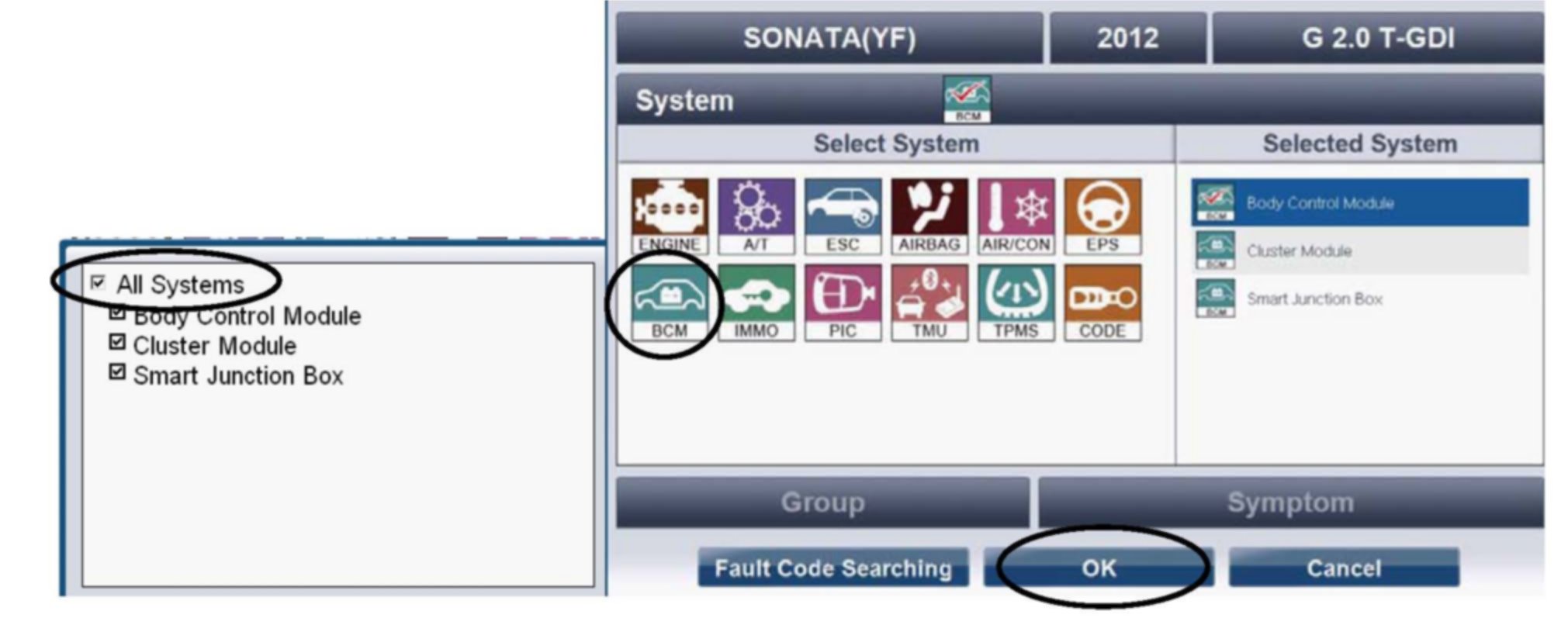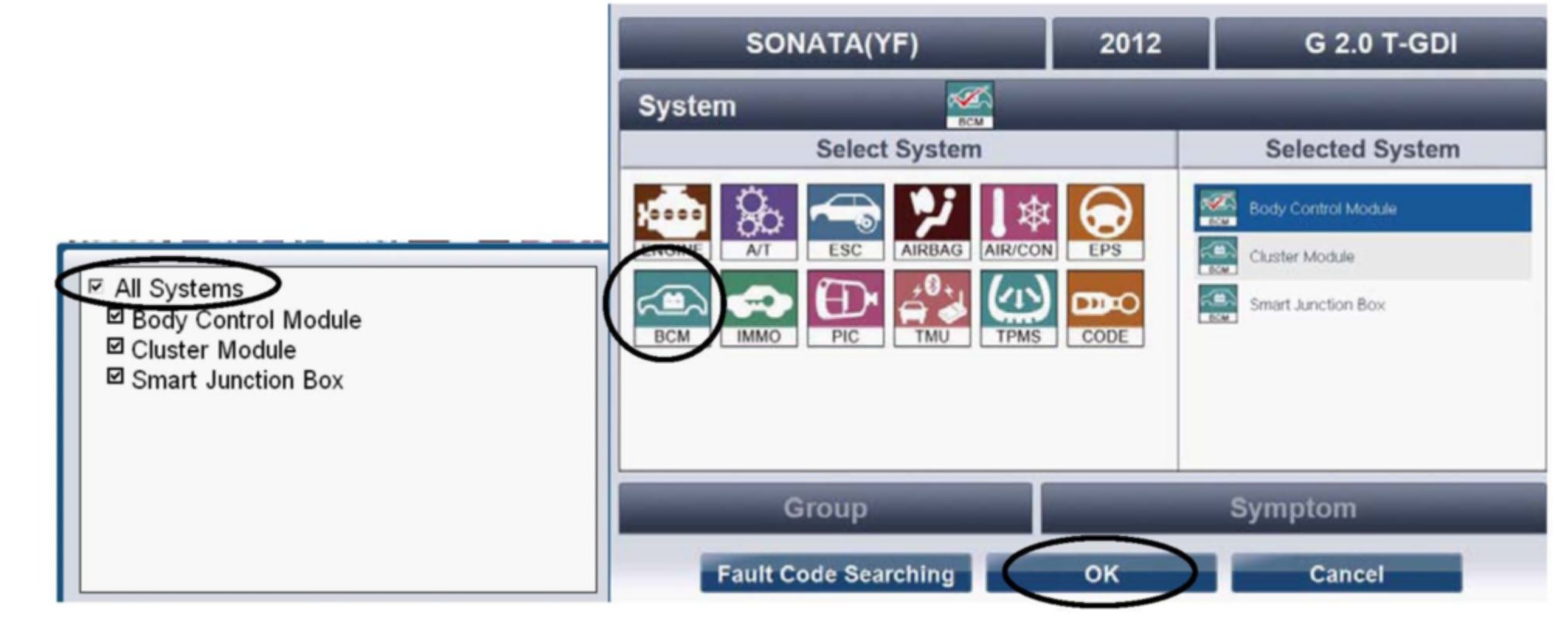 5.2 Select BCM as the system, select All Systems in the sub window, and then select OK.