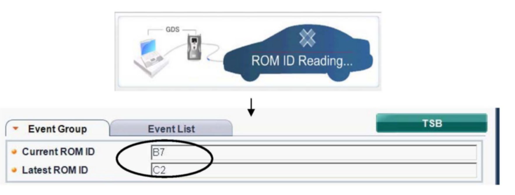 5.5 The GDS will read the ROM ID. Confirm the ROM is applicable as shown on Page 1, "ROM ID Information Table".