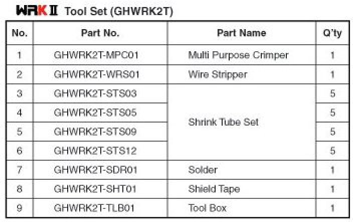 2. Use of in-line solder (GHWRK2T-SDR01) and Shrink tube set (GHWRK2T-STS03, 05, 09, 12)