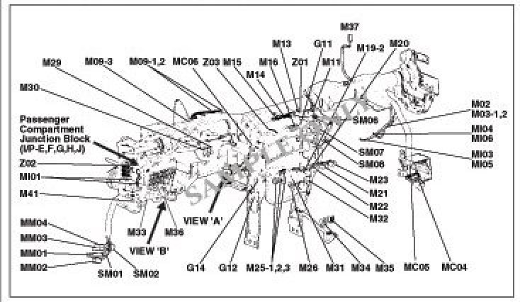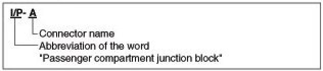 A junction block identification symbol consists of a wiring harness location classification symbol corresponding to a wiring harness location and number corresponding to the connector in the junction block.