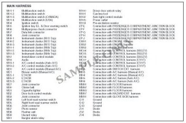 Electrical wiring connectors are classified according to the wiring parts in the Harness Layouts.