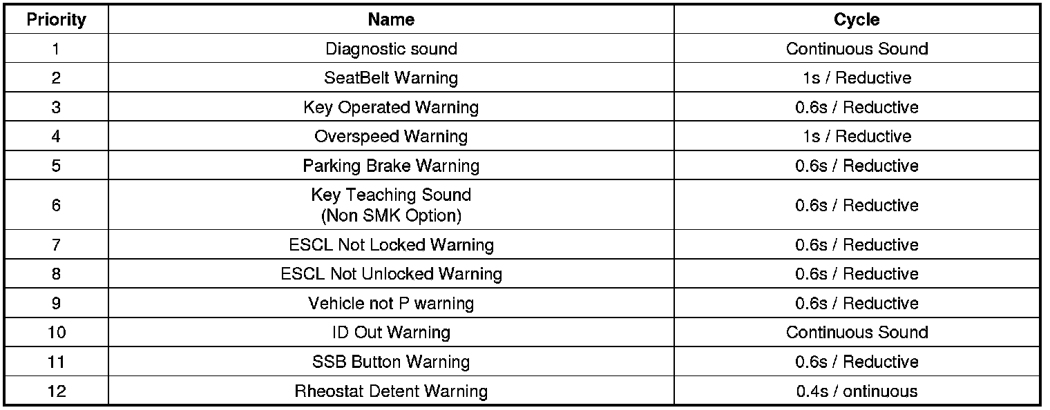 (1) INT buzzer every 0.6sec when Driver door switch is ON under key in ON.