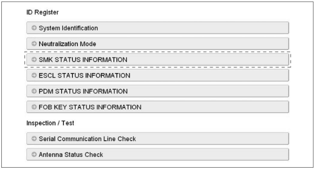 2. After IG ON, select the "SMK STATUS INFO".