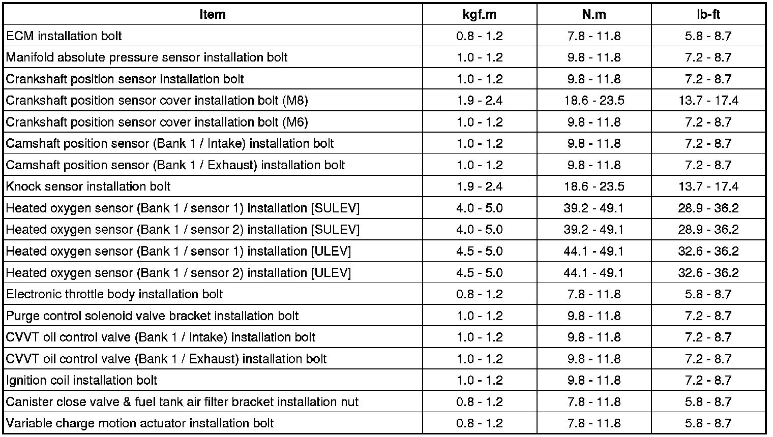 Home >> Hyundai >> 2012 >> Tucson FWD L4-2.0L >> Repair and Diagnosis >> Powertrain Management >> Specifications