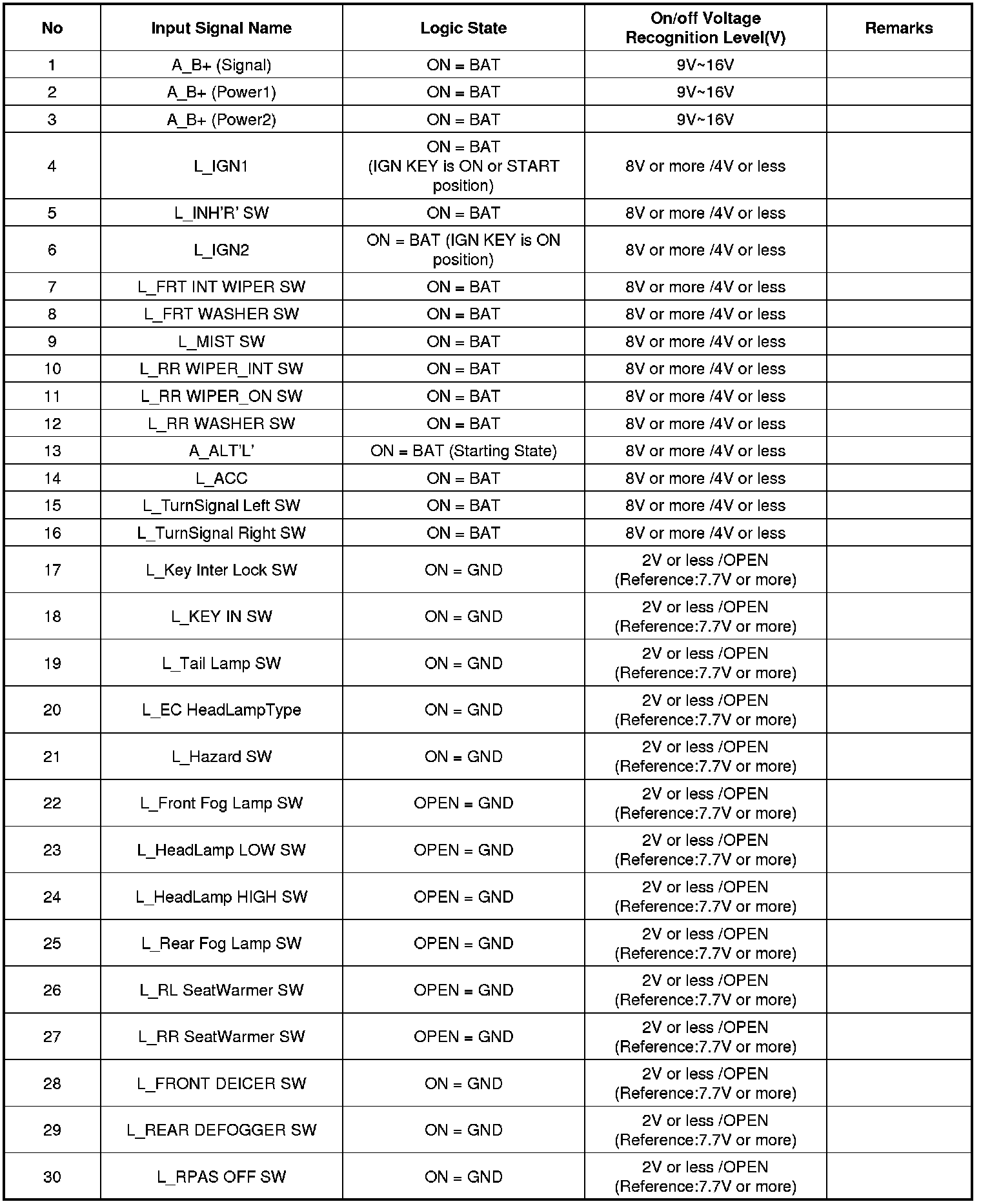 3. To consult the present input/out value of IPM, "Current DATA". It provides information of IPM input/output conditions of power supply, turn signal/brake lamp, headlamp, door locks, outside mirror, wiper, auto-light and transmitters etc.