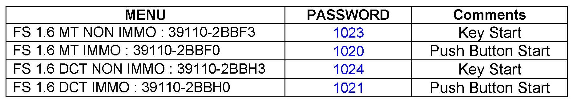 ^ It is critical to identify the correct ECM Part Number in the PASSWORD table or the ECM may be permanently damaged. It is recommended to remove ECM and read the part number from the label to confirm.
