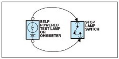 Use a self-powered test lamp or an ohmmeter to check for continuity.