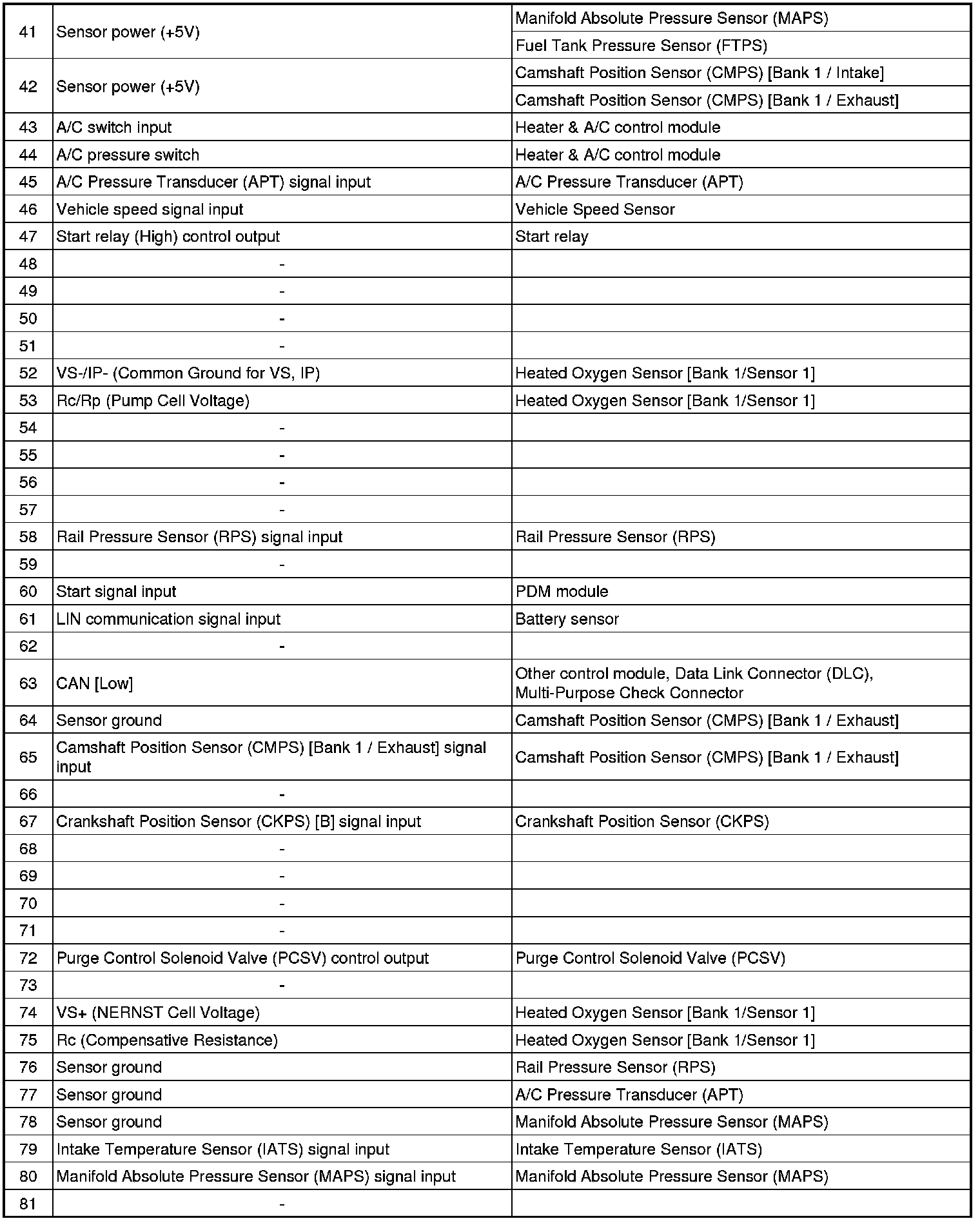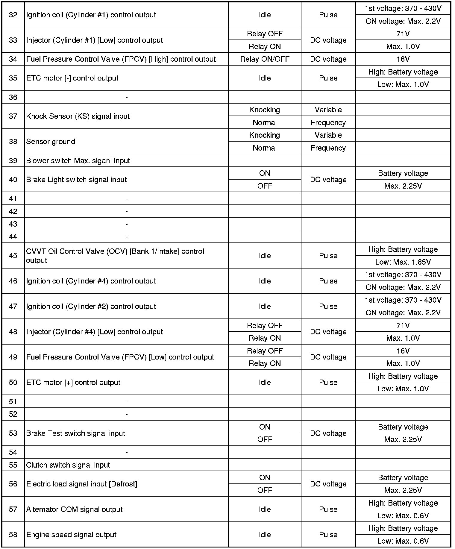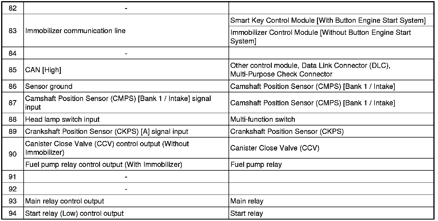 ECM Terminal Input/Output Signal