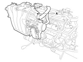 Remove the intake manifold (A) with the gasket (B).