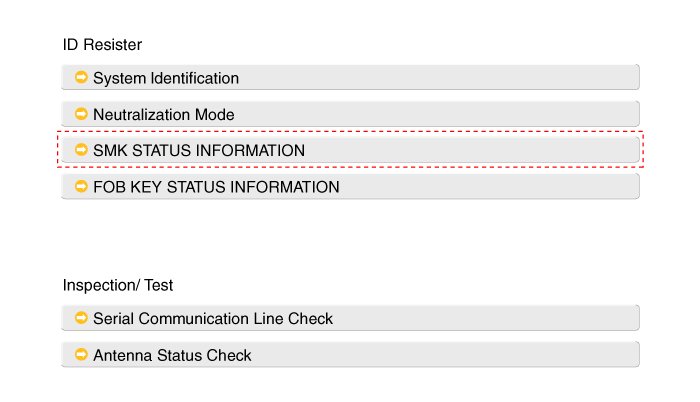 2. After IG ON, select the "SMK STATUS INFO".