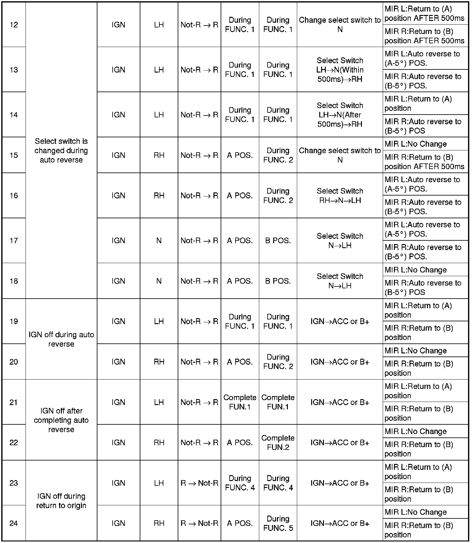 6. OUTSIDE MIRROR DOWN OPERATION AT REVERSING (AUTO REVERSE)